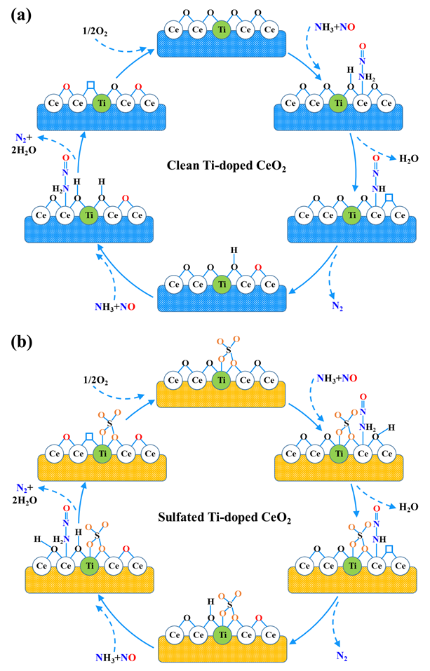 2. Ce-Ti固溶体催化剂选择性催化还原NOxNH3-SCR)的反应机理示意图