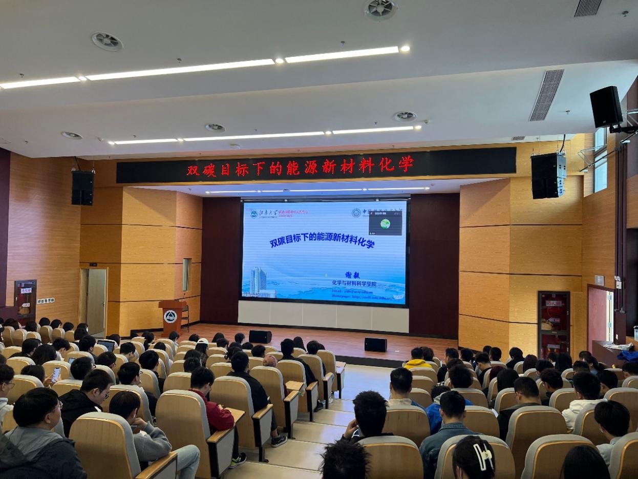 报告会上,谢毅院士以“双碳目标下的能源新材料化学”为题做了主题报告,详细介绍了双碳目标下小分子光电催化转化、热电催化、可再生能源等领域中能源材料方面的最新研究进展和发展趋势。孙晓明教授以“气体超浸润纳米阵列电极及氢能应用”为题做了主题报告,详细介绍了电催化制氢、电催化二氧化碳还原等领域中微纳结构超亲气电极构筑方面的最新研究进展。两位专家的报告高屋建瓴、创新突出、启发性强,引起了我校师生的强烈兴趣和广泛讨论。
