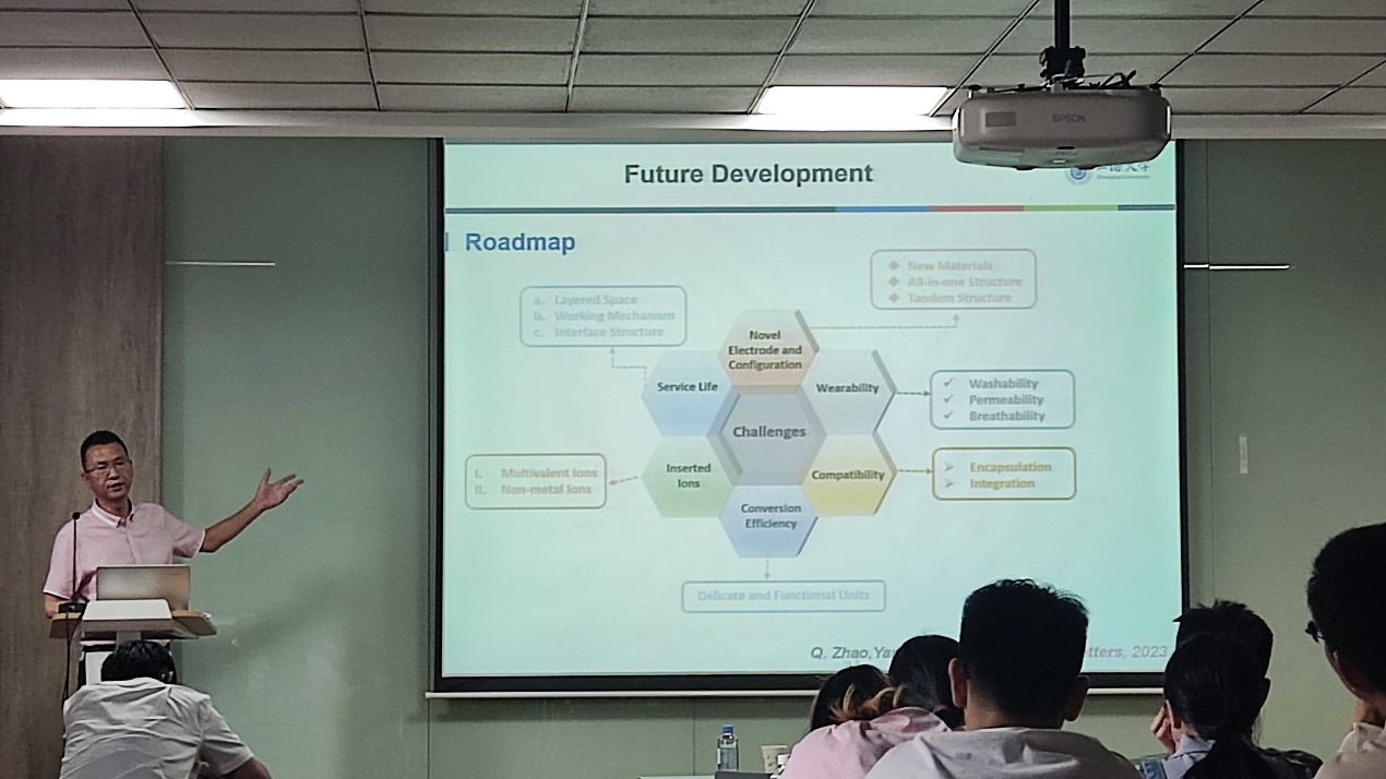 高教授着重介绍了热/电致变色节能器件的基本原理和最新进展,并展望了主要研究方向。具体分为以下三部分:1、介绍了热致变色材料和系统的最新研究进展,展示了热致变色材料在建筑节能中的实际应用,评述了热致变色节能窗的挑战和机遇;2、介绍了电致变色的相关理论知识及电致变色器件在可穿戴领域以及新能源汽车领域的应用;3、着重讨论课题组以面向工程应用为出发点的材料探索,阐述了材料的选择与研究方法。报告会吸引了众多师生前来参加,现场气氛十分活跃,高教授也与师生进行了广泛的讨论与交流。
