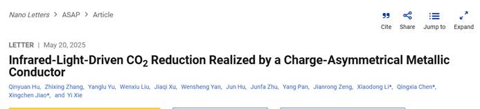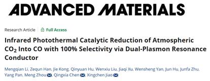 化工学院焦星辰教授课题组连续在《Adv. Mater.》、《Nano Lett.》上发表关于红外光还原CO2的研究进展