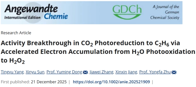 近日,我校2007so太阳集团董玉明教授团队在光合成领域取得突破性进展,C2H6/H2O2联产的研究成果以“Activity Breakthrough in CO2Photoreduction to C2H6via Accelerated Electron Accumulation from H2O Photooxidation to H2O2”为题发表在《Angewandte Chemie International Edition》上(DOI:10.1002/anie.202521909)。论文第一作者为博土研究生杨婷羽,通讯作者为董玉明教授和朱永法教授。