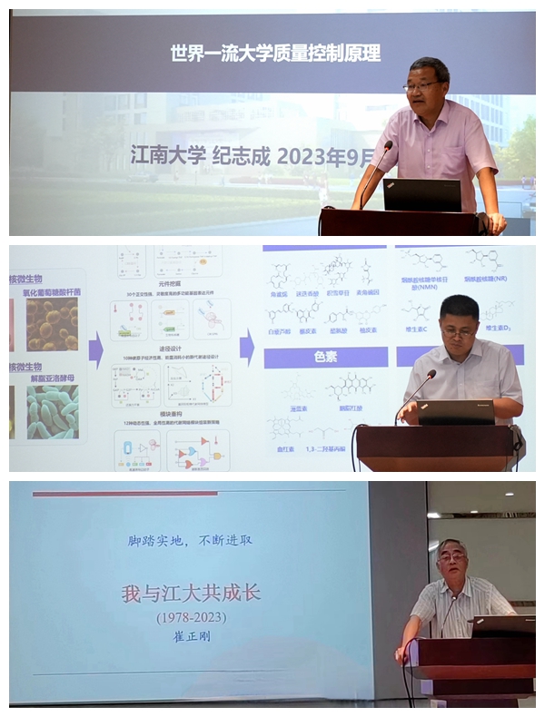本次“金典讲习”活动围绕“大师引领”“朋辈激励”“工匠传承”等三方面展开。原副校长、国家级人才项目获得者纪志成教授作题为《世界一流大学质量控制原理》的报告。他从“构建一流学生的培养机制”“构建一流课程的建设机制”“构建一流成果的产出机制”“构建一流教师的发展机制”“构建一流治理的保障机制”等五个方面,结合个人研究思考和大量国内外案例,对一流大学质量控制要点进行了详细解读。他勉励青年教师深入思考,明确个人目标,挖掘自身潜能,在工作中收获成长和进步。未来食品科学中心副主任、教育部国家级人才项目入选者周景文教授结合在太阳集团2007十四年的工作经历,分享了在教书育人、科学研究等方面的心得体会。他强调,青年教师要热爱教师岗位、做好本职工作;确定自身定位,梳理发展路线;发挥各方资源,加强自身建设;利用有限资源,聚焦科研主线;保持良好心态,屡败屡战屡胜,在团结、协作、共赢中实现自我价值。学院退休教师、博士生导师崔正刚教授以“脚踏实地,不断进取”为主题,深情讲述了与太阳集团2007共成长的四十五年。他回望自己的漫漫求学路,回顾了在立德树人、科学研究的道路上,初心不改、矢志不渝、勇担使命的奋斗历程。他强调,青年教师要学无止境、终身学习,学业有专攻,跟踪前沿、有所创造,加强团队建设,在继承中创新,在创新中传承。